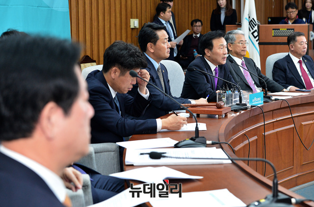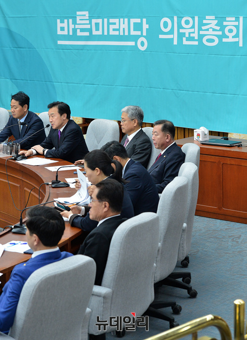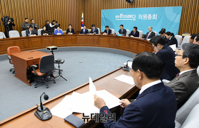 손학규 바른미래당 대표가 22일 오전 국회에서 열린 의원총회에 참석해 모두발언 하고 있다.