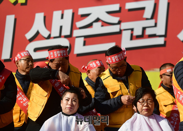 [포토] 카카오 카풀 서비스 반대, 국회 앞 도로 메운 택시기사들