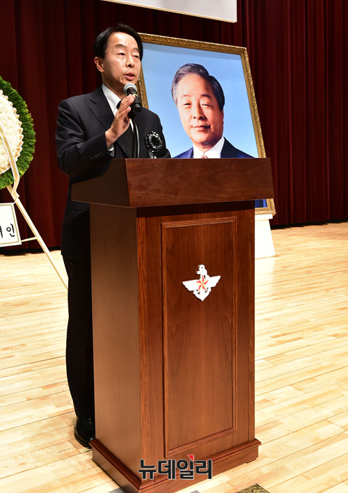 고 김영삼 전 대통령 차남인 김현철 국민대 특임교수가 22일 오후 서울 동작구 국립서울현충원 현충관에서 열린 김영삼 전 대통령 서거 3주기 추모식에서 유가족 대표로 발언을 하고 있다.