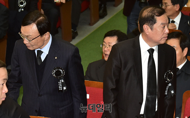 이해찬 더불어민주당 대표와 김병준 자유한국당 비상대책위원장이 22일 오후 서울 동작구 국립서울현충원 현충관에서 열린 김영삼 전 대통령 서거 3주기 추모식에 참석해 있다.