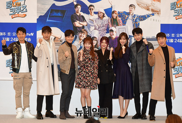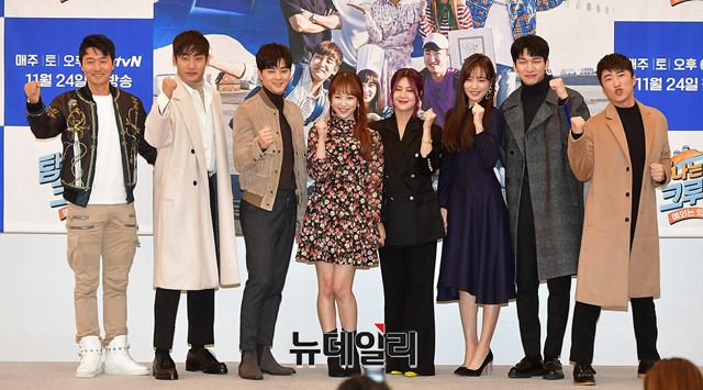 이성재, 박재정, 김지훈, 레이첼, 솔비, 윤소희, 빅스 혁, 장동민(왼쪽부터)이 23일 오후 서울 중구 동대문디자인플라자에서 열린 tvN '탐나는 크루즈(기획 이근찬, 연출 반재명)' 제작보고회에서 포토타임을 갖고 있다.