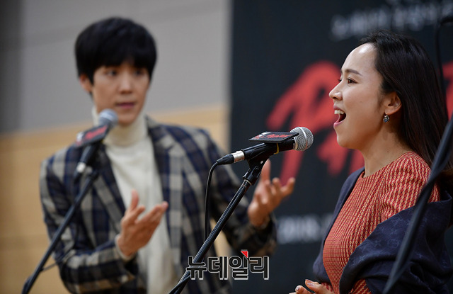 배우 김순영이 23일 오후 서울 중구 충무아트센터 연습실에서 진행된 뮤지컬 '팬텀' 시츠프로브 공개 행사에서 노래하고 있다.