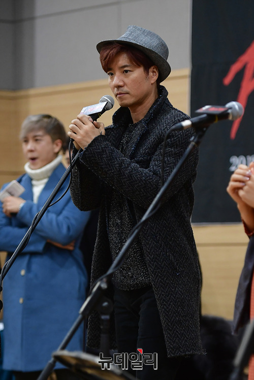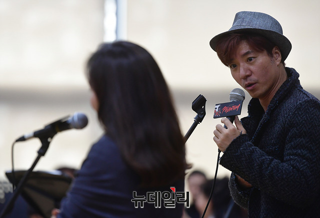 배우 임태경이 23일 오후 서울 중구 충무아트센터 연습실에서 진행된 뮤지컬 '팬텀' 시츠프로브 공개 행사에서 연기하고 있다.