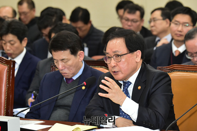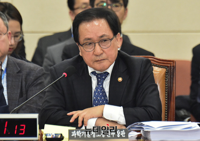 유영민 과학기술정보통신부 장관이 26일 오전 국회에서 열린 과학기술정보방송통신위원회 전체회의에 출석해 KT아현지사 화재사건 관련 의원들의 질문에 답하고 있다.