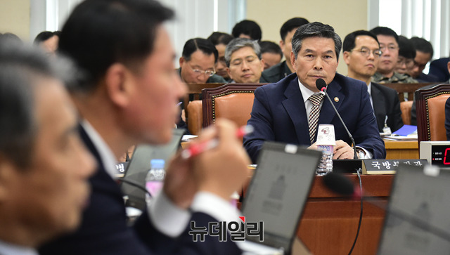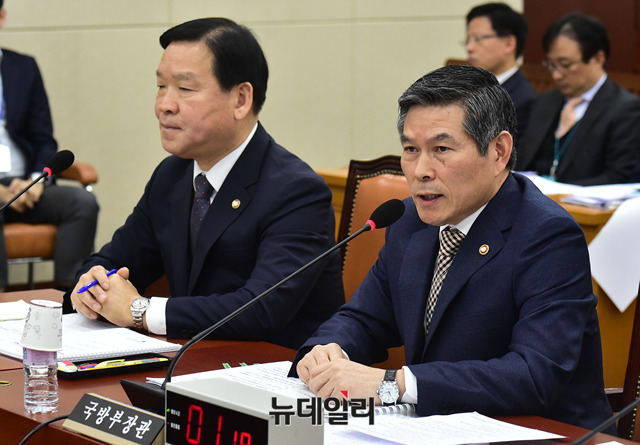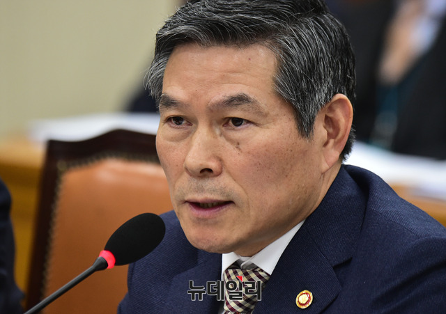 정경두 국방부 장관이 26일 오전 국회에서 열린 국방위원회 전체회의에 참석해 의원 질문에 답하고 있다.