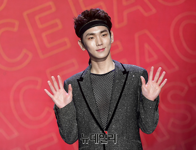 샤이니 키가 26일 오후 서울 광진구 건국대학교 새천년관 대공연장에서 첫 솔로앨범 ‘FACE’ 발매 기념 쇼케이스에서 포토타임을 갖고 있다.