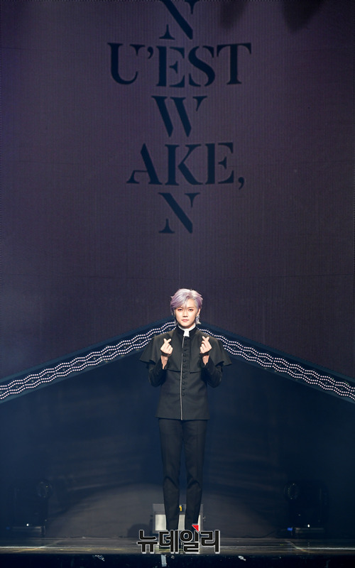 그룹 뉴이스트W 멤버 렌이 26일 오후 서울 용산구 블루스퀘어에서 열린 신규앨범 'WAKE,N(웨이크엔)' 쇼케이스에서 포토타임을 갖고 있다.