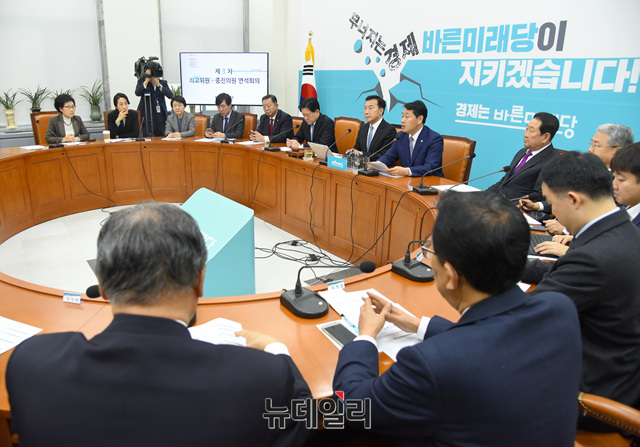 손학규 바른미래당 대표가 28일 오전 국회에서 열린 최고위원회의 및 최고위원-중진의원 연석회의에 참석해 모두발언 하고 있다.