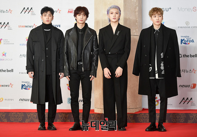 그룹 뉴이스트W가 28일 오후 인천 중구 파라다이스시티 아트스페이스 플라자에서 열린 2018 AAA(ASIA ARTIST AWARDS, 아시아 아티스트 어워즈) 레드카펫 행사에서 포토타임을 갖고 있다.AAA는 한 해 동안 아시아와 대한민국을 빛낸 K-POP, K-DRAMA, K-MOVIE를 결합해 수상자를 선정하는 시상식이다. 지난 2017년에는 배우 김희선과 가수 EXO가 각각 대상을 수상한 바 있다.시상식은 이날 오후 5시부터 인천 남동체육관에서 진행된다. 생중계는 V LINE과 MTN을 통해 중계 된다. (인천=뉴데일리 정상윤 기자)