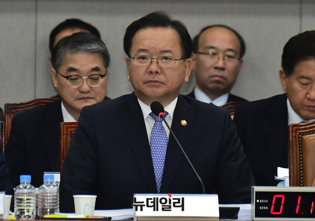 김부겸 행정안전부 장관이 29일 오전 국회에서 열린 운영위원회 전체회의에서 의원들의 질문에 답하고 있다.