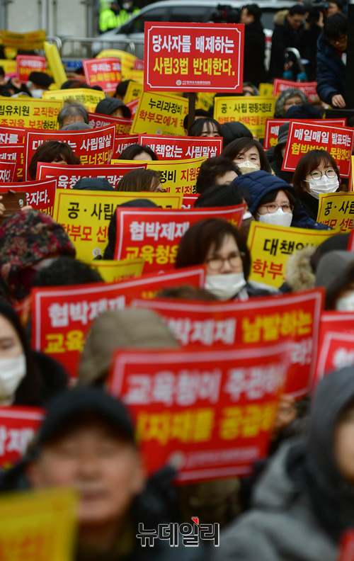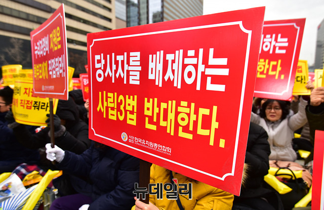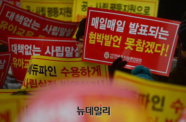 이들은 대회를 통해 △유아학비 학부모에게 직접 지원 △국·사립 구분없이 모든 아이에게 무상 유아교육 실시 △국공립에 비해 업무강도가 더 높은 사립유치원 교직원 인건비 국공립 수준으로 지원 등을 요구했다.
