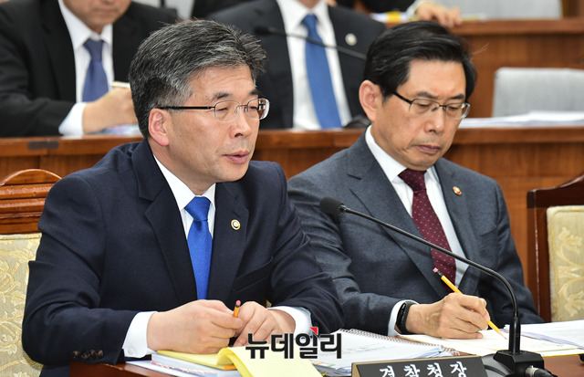 민갑룡 경찰청장이 30일 오전 국회에서 열린 사법개혁특별위원회 전체회의에서 의원들 질문에 답하고 있다.
