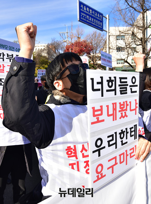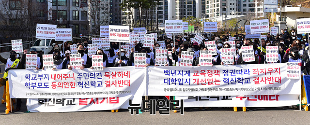 [포토] 혁신학교 지정 규탄 "장관자녀 과고외고, 내자식은 학력미달"