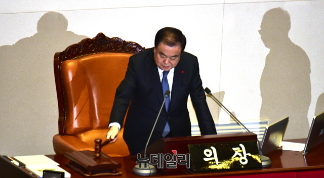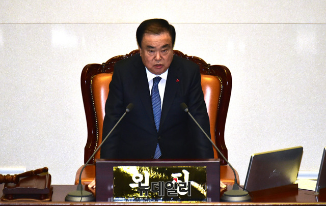 문희상 국회의장이 3일 오후 국회에서 열린 본회의에서 내년도 예산안 관련 발언을 하고 있다.