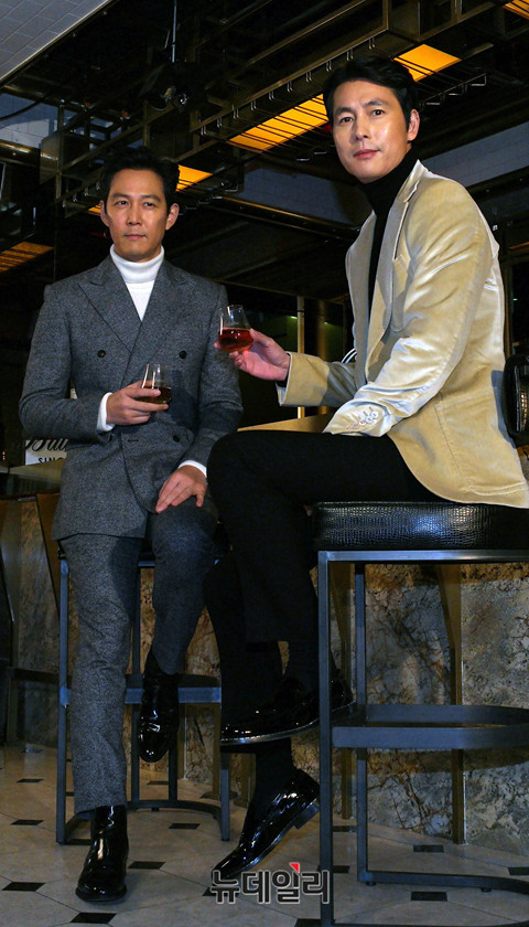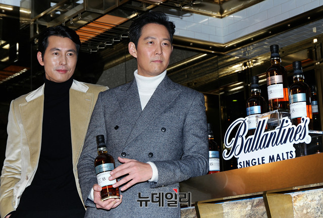 배우 이정재와 정우성이 6일 오전 서울 용산구 섹션에이에서 열린 페르노리카 코리아 위스키 '발렌타인' 싱글 몰트 캠페인 'Wanna meet a Single?' 론칭 기념 행사에 참석해 포즈를 취하고 있다.