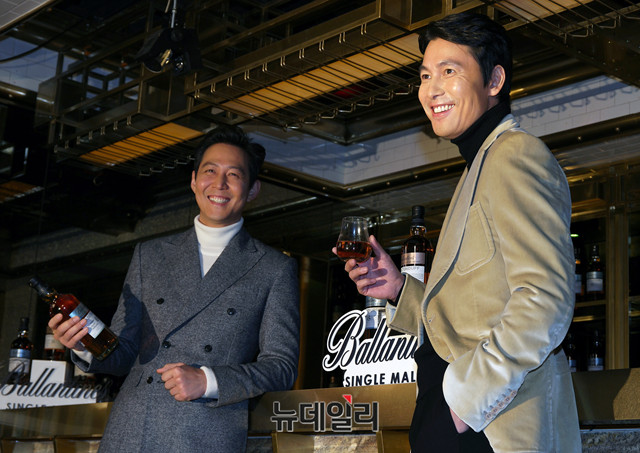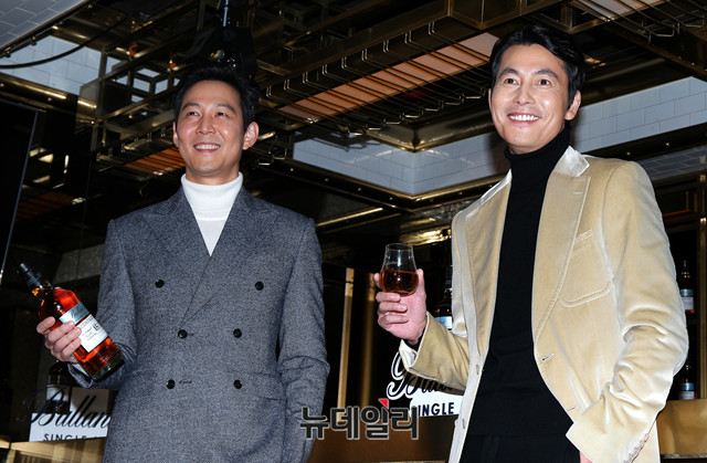 배우 이정재와 정우성이 6일 오전 서울 용산구 섹션 에이에서 열린 페르노리카 코리아 위스키 '발렌타인' 싱글 몰트 캠페인 'Wanna meet a Single?' 론칭 기념 행사에 참석해 포즈를 취하고 있다.