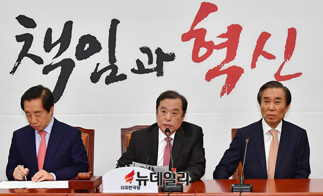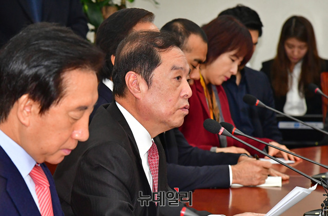 김병준 자유한국당 비상대책위원장이 6일 오전 국회에서 열린 비상대책위원회의에서 모두발언을 하고 있다.