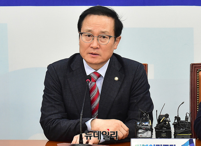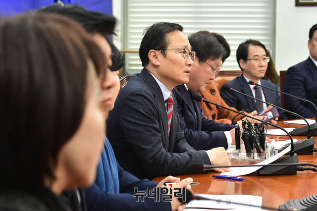 홍영표 더불어민주당 원내대표가 6일 오전 국회에서 열린 정책조정회의에서 모두발언을 하고 있다.