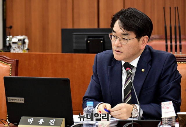 박용진 더불어민주당 의원이 6일 국회애서 열린 교육위 법안심사 소위에 참석해 모두발언을 하고 있다.