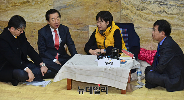 [포토] 이정미 정의당 대표 단식농성장 찾은 김성태 한국당 원내대표