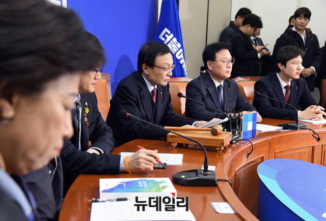 이해찬 더불어민주당 대표가 10일 오전 국회에서 열린 최고위원회의에 참석해 모두발언 하고 있다.
