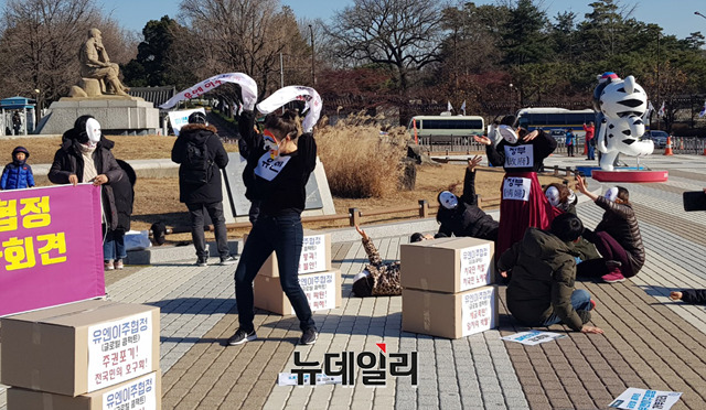 이들 단체는 "국민에 의해서 선출되고 권한을 위임 받은 머슴이나 다름없는 정부가 주인인 국민들의 허락은커녕 아무런 보고도 하지 않고 있다가 일방적 통보나 다름없는 언론 정례브리핑이라는 형식으로 협약 참가결정을 발표했다"며 "헌법 제60조에 정한 조약체결과 비준에 관한 절차를 위반한 것"이라고 했다.