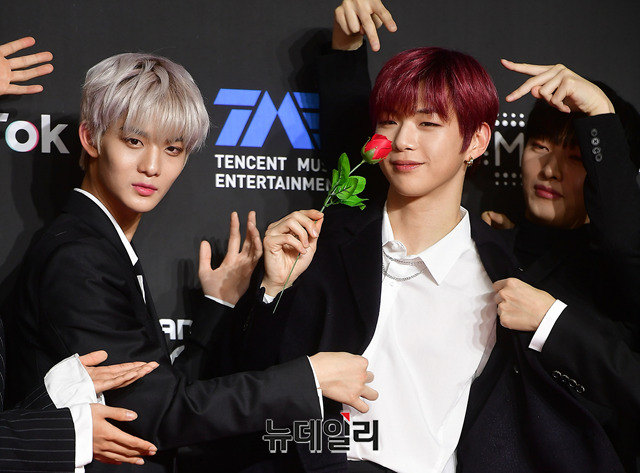 워너원 강다니엘이 10일 오후 서울 중구 동대문디자인플라자(DDP)에서 열린 '2018 엠넷 마마 프리미어 인 코리아(2018 Mnet Asian Music Awards PREMIERE in KOREA, 이하 2018MAMA)' 레드카펫 행사에서 멤버들로 부터 생일 축하를 받고 있다.올해 10회를 맞은 '2018MAMA'는 CJ ENM이 주최하는 글로벌 음악 시상식이다. 10일 한국을 시작으로 12일 일본 사이타마 슈퍼 아레나, 14일 홍콩 AWE까지 3개 지역을 아우르는 성대한 MAMA WEEL를 이어간다. 생중계는 Mnet과 아시아 주요 지역의 채널에서 동시 진행되며 Mwave, 유투브, 네이버TV, V Live를 통해 온라인으로 시청이 가능하다.