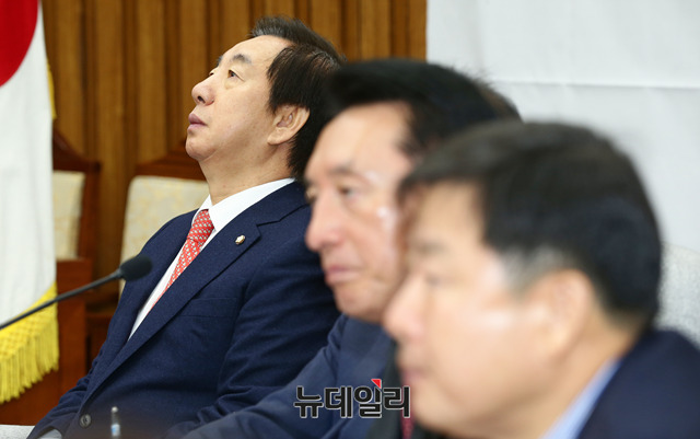 임기 마지막날인 김성태 자유한국당 원내대표가 11일 오전 국회에서 열린 원내대책회의에 참석해 눈물을 보이고 있다.