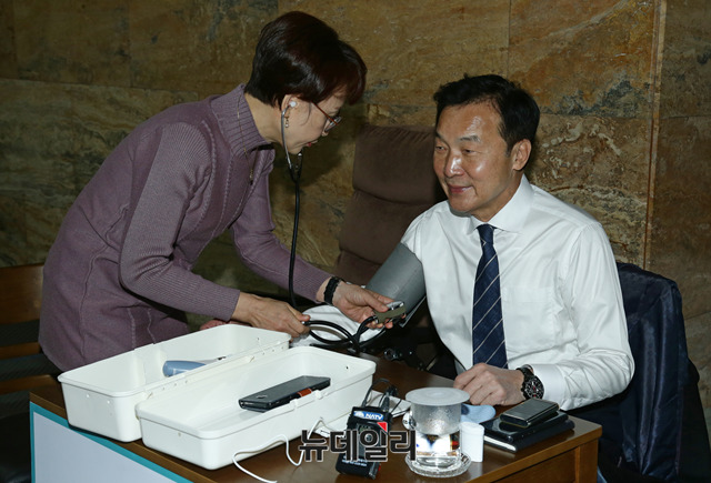 [포토] 단식 6일, 건강상태 확인하는 손학규 바른미래당 대표