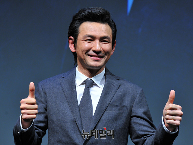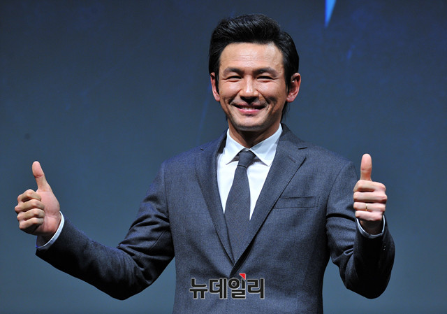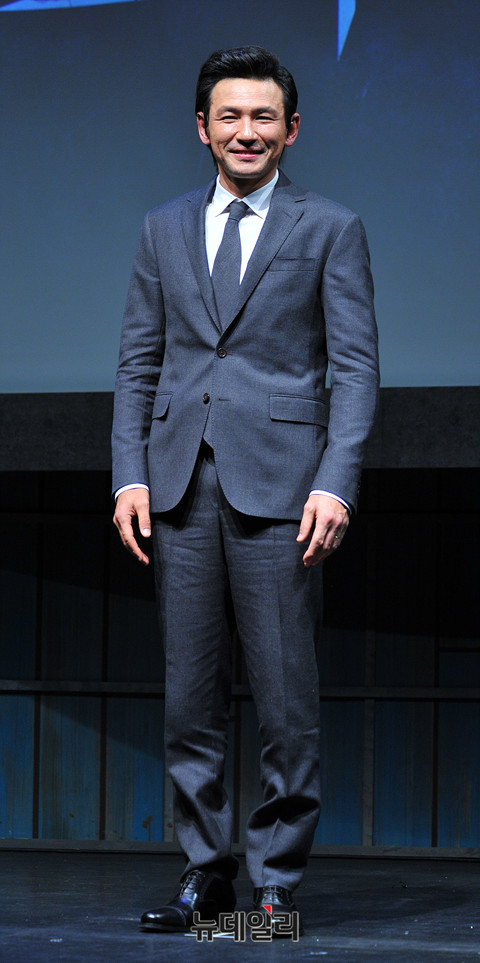 배우 황정민이 11일 오후 서울 용산구 블루스퀘어 카오스홀에서 열린 연극 '오이디푸스' 제작발표회에 참석해 포토타임을 갖고 있다. 황정민은 주인공 오이디푸스 역을 맡았다.