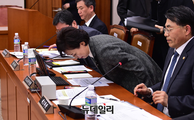 김현미 국토교통부 장관이 11일 오후 국회에서 열린 강릉선 KTX 궤도이탈 사고 관련 국토교통위원회 현안보고에 출석하기 위해 입장하고 있다.
