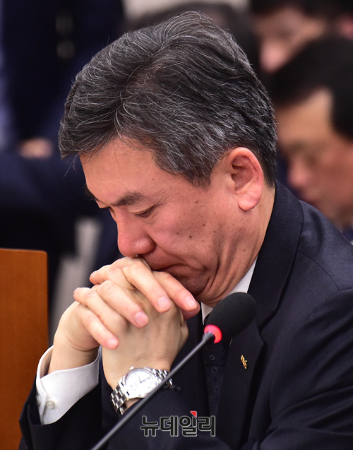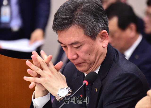 정인수 코레일 부사장이 11일 오후 국회에서 열린 강릉선 KTX 궤도이탈 사고 관련 국토교통위원회 현안보고에 출석해 생각을 하고 있다.