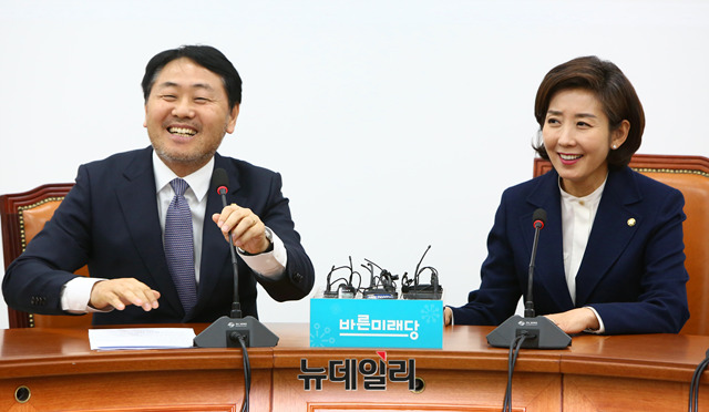 나경원 자유한국당 신임 원내대표가 12일 오후 국회에서 김관영 바른미래당 원내대표를 예방해 대화를 나누고 있다.