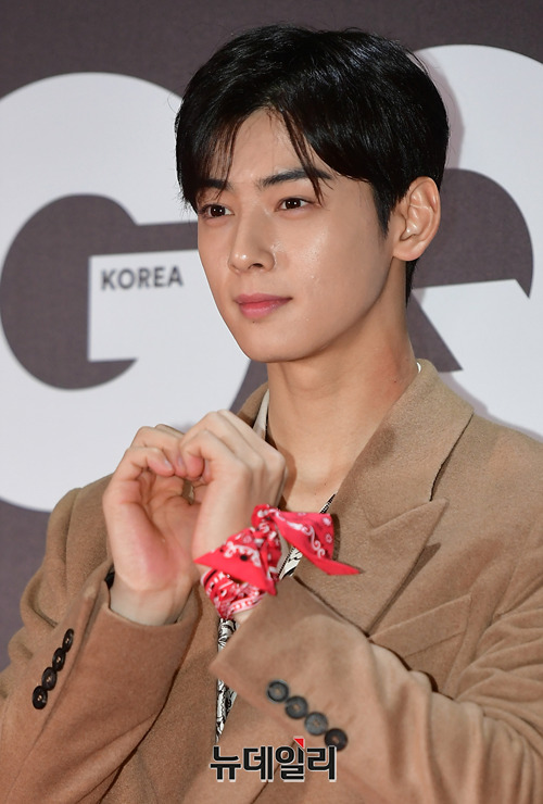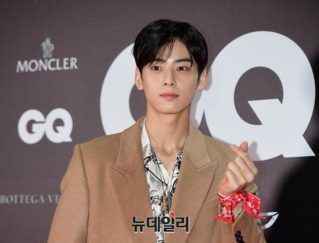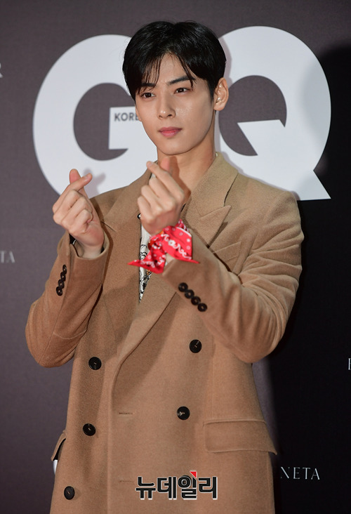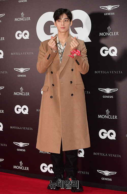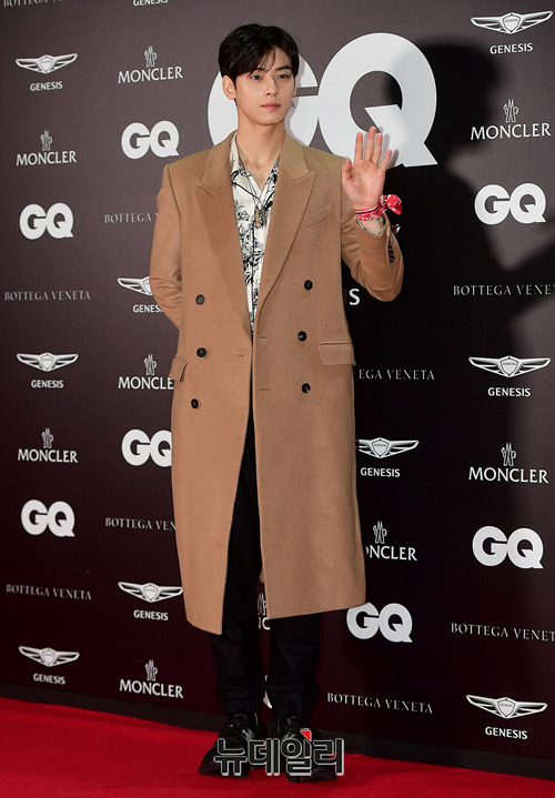아스트로 멤버 차은우가 13일 오후 서울 강남구 SJ. 쿤스트할레에서 열린 '2018 지큐 나이트(GQ NIGHT)' 기념 파티에 참석해 포토타임을 갖고 있다.