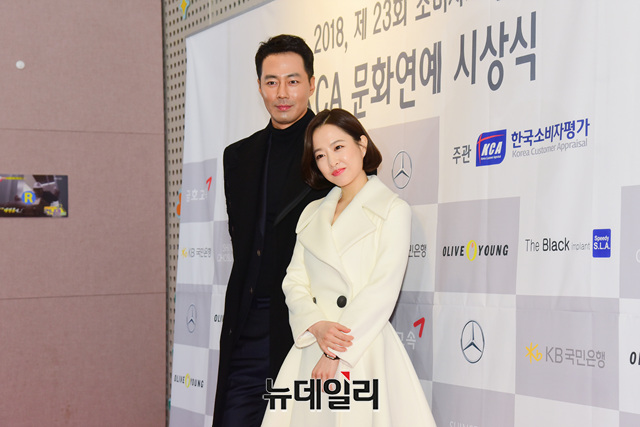 배우 조인성, 박보영이 17일 오후 서울 중구 서울시청 태평홀에서 열린 제 23회 소비자의 날 KCA문화연예 시상식에 참석해 포토타임을 갖고 있다.