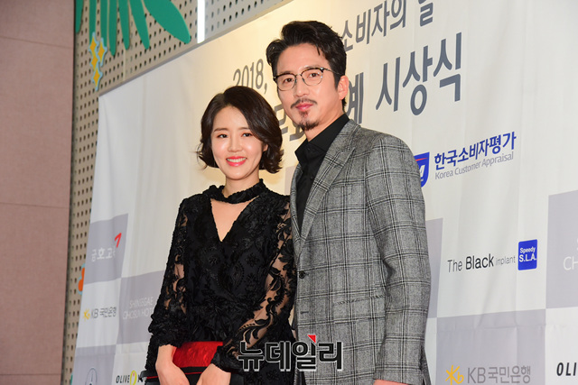 배우 정준호, 이하정 부부가 17일 오후 서울 중구 서울시청 태평홀에서 열린 제 23회 소비자의 날 KCA문화연예 시상식에 참석해 포토타임을 갖고 있다.