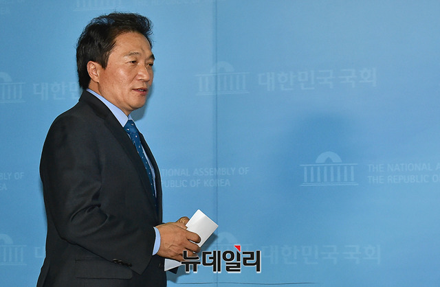 3선의 바른미래당 이학재 의원이 18일 오전 국회 정론관에서 탈당 기자회견을 하고 있다. 이 의원은 기자회견에서 "안타깝게도 문재인 정부는 대한민국의 민생, 경제, 안보를 모두 어렵게 하고 있다"며 "소득주도성장과 같은 비현실적이고 아마추어보다 못한 정책으로 기업은 활력을 잃고, 국민은 일자리를 잃고, 대한민국은 미래를 잃었다"고 비판했다.