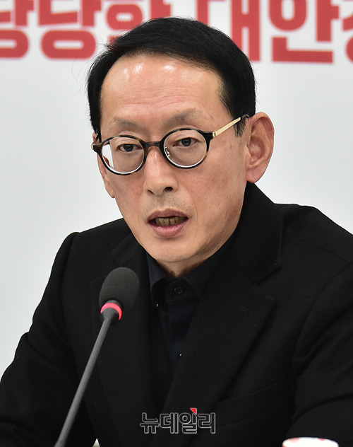 김도읍 자유한국당 청와대 특별감찰반 정권실세 사찰보고 및 불법사찰 의혹 진상조사단 단장이 18일 오후 국회에서 열린 회의에서 모두발언을 하고 있다.