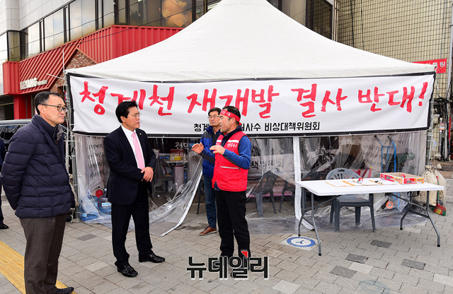 [포토] 청계천 생존권사수 비대위 방문한 송석준 의원