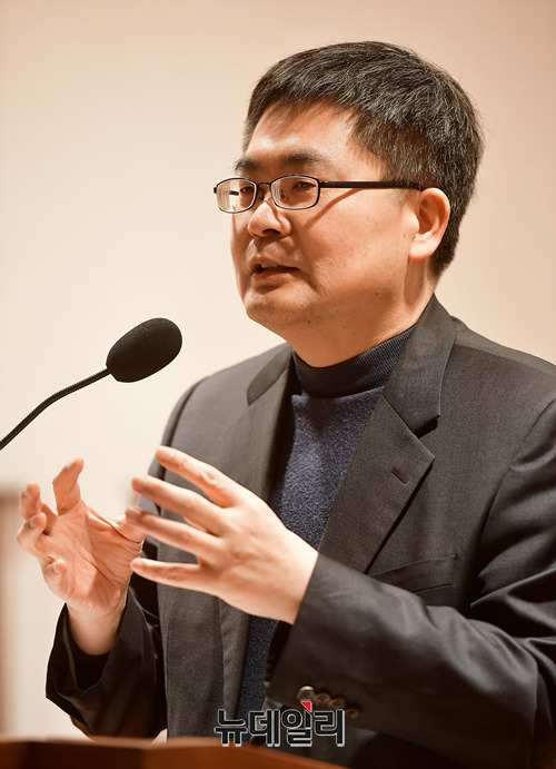 오영섭 연세대 이승만연구원 연구교수가 18일 오후 서울 중구 정동제일교회 아펜젤러홀에서 열린 제94회 이승만포럼에서 '이상재와 이승만 : 개화·선교·독립을 위한 협력과 후원 관계'를 주제로 강연하고 있다.오 교수는 "월남 이상재와 우남 이승만은 한국근대의 개화운동사·기독교 민족운동사·독립운동사를 주도한 인사"라며 "양인은 기독교, 친미성향의 경력과 개혁사상, 강렬한 구국의식과 독립사상을 삼위일체로 결합시킨 기독교 개혁운동가 내지 독립운동가로서의 면모를 동시에 지니고 있다"고 했다.