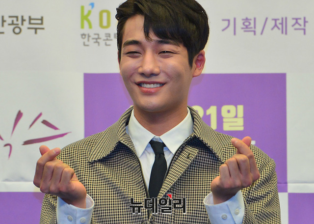 배우 강율이 19일 오후 서울 마포구 스탠포드호텔에서 열린 웹드라마 '넘버식스(극본 박선재 박재현, 연출 박기현 박선재)' 제작발표회에서 포토타임을 갖고 있다.