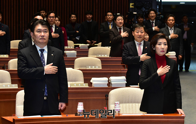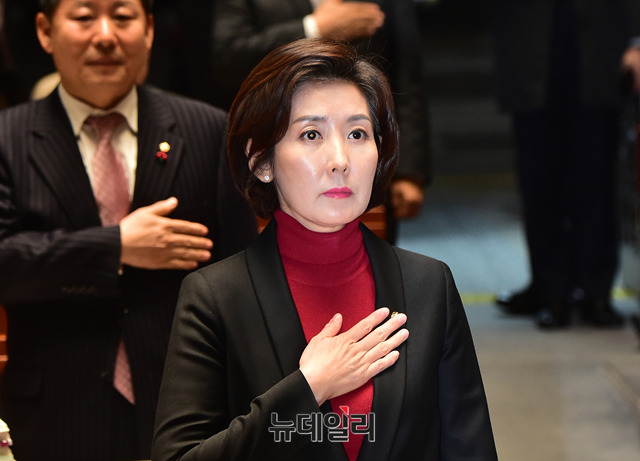 [포토] 국민의례하는 나경원 자유한국당 원대표
