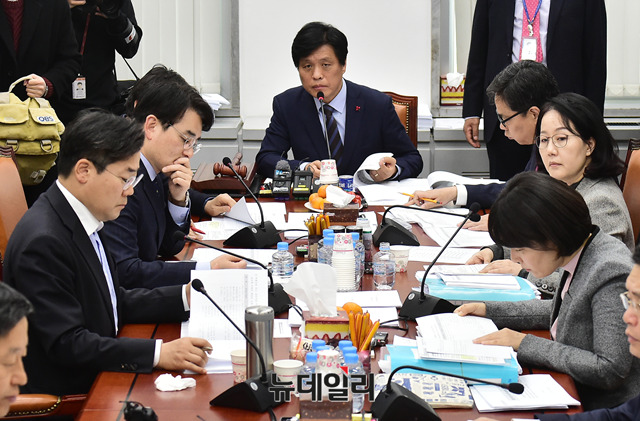 조승래 국회 교육위원회 법안심사소위원장이 20일 오전 국회에서 열린 교육위 법안소위에서 의사진행을 하고 있다.