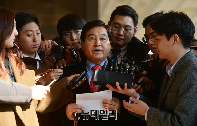 [포토] 검찰 출석 직전 입장 밝히는 심재철 의원