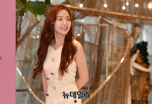 배우 박민영이 21일 오후 서울 송파구 롯데 에비뉴엘 월드타워점에서 열린 브랜드 '멀버리(MULBERRY)' 리뉴얼 오픈행사에 입장하고 있다.