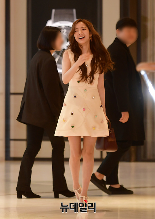 배우 박민영이 21일 오후 서울 송파구 롯데 에비뉴엘 월드타워점에서 열린 브랜드 '멀버리(MULBERRY)' 리뉴얼 오픈행사에 퇴장하며 뒤돌아보며 미소짓고 있다.