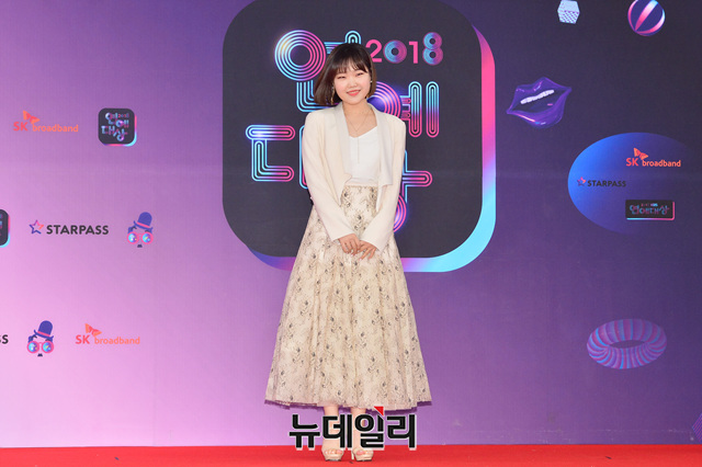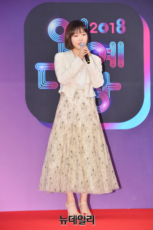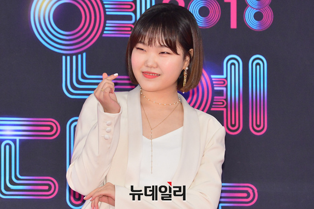 악동뮤지션 이수현이 22일 오후 서울 영등포구 KBS 본관에서 열린 '2018 KBS 연예대상' 레드카펫 행사에 참석해 포즈를 취하고 있다. 이수현은 이날 올해의 신인DJ상을 수상했다.