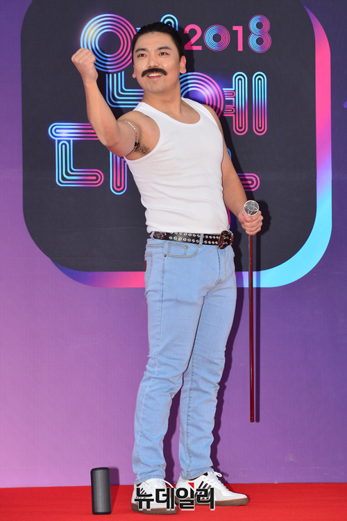 개그맨 곽범이 22일 오후 서울 여의도 KBS 본관에서 열린 '2018 KBS 연예대상' 레드카펫 행사에 참석해 포즈를 취하고 있다.