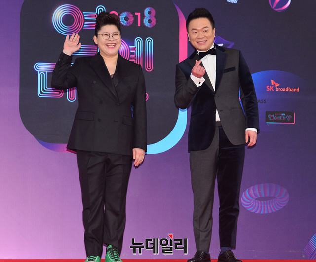 개그우먼 이영자가 22일 오후 서울 여의도 KBS 본관에서 열린 '2018 KBS 연예대상' 레드카펫 행사에 참석해 포즈를 취하고 있다. 이날 이영자는 대상을 수상했다.