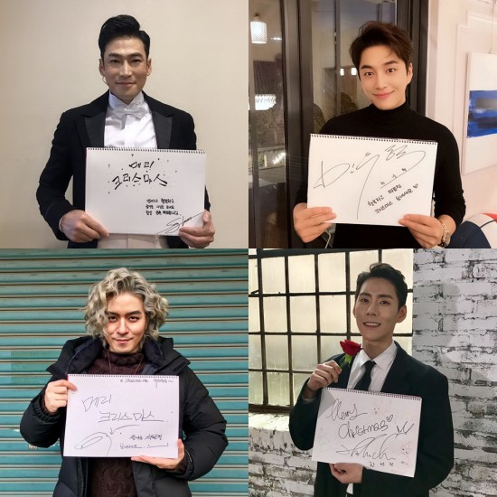 배우 박송권·민우혁·이주광·한선천이 크리스마스 인사를 전했다.24일 소속사 큐로홀딩스컬쳐사업부 측은 박송권·민우혁·이주광·한선천의 크리스마스 자필메시지가 담긴 사진을 공개했다.현재 뮤지컬 '팬텀'에서 필립 드 샹동 백작 역을 맡아 열연 중인 박송권은 "메리 크리스마스 언제나 행복하고 즐거운 나날들 보내요 항상 응원하겠습니다"고 따뜻한 메시지를 건넸다.이어 민우혁은 부드러운 미소와 함께 "행복하고 따뜻한 크리스마스 보내세요"를, 뮤지컬 '루드윅: 베토벤 더 피아노'의 주인공 이주광은 "크리스마스에는 루드윅을~ 메리 크리스마스 즐거운 성탄절 보내세요"라고 적었다.Mnet '썸바디'에 출연 중인 한선천은 "메리 크리스마스" 문구와 함께 루돌프와 산타, 트리 등 크리스마스 느낌이 나도록 손수 그림까지 그려 눈길을 끈다.[사진=큐로홀딩스]